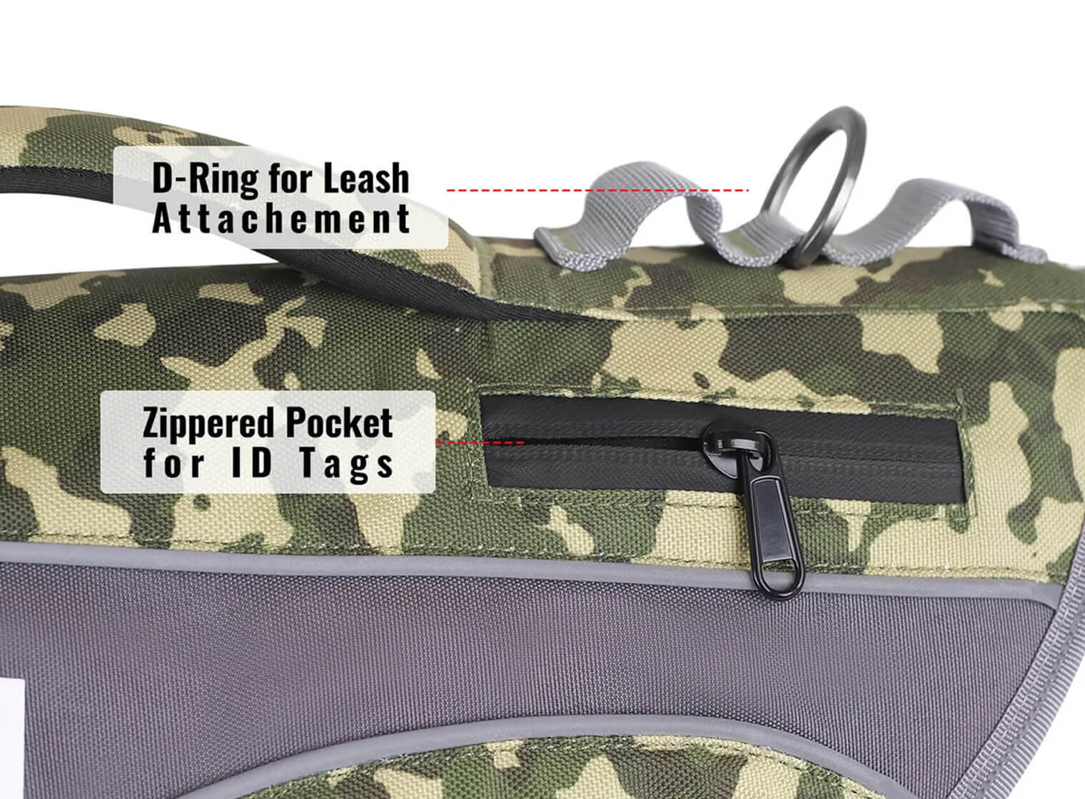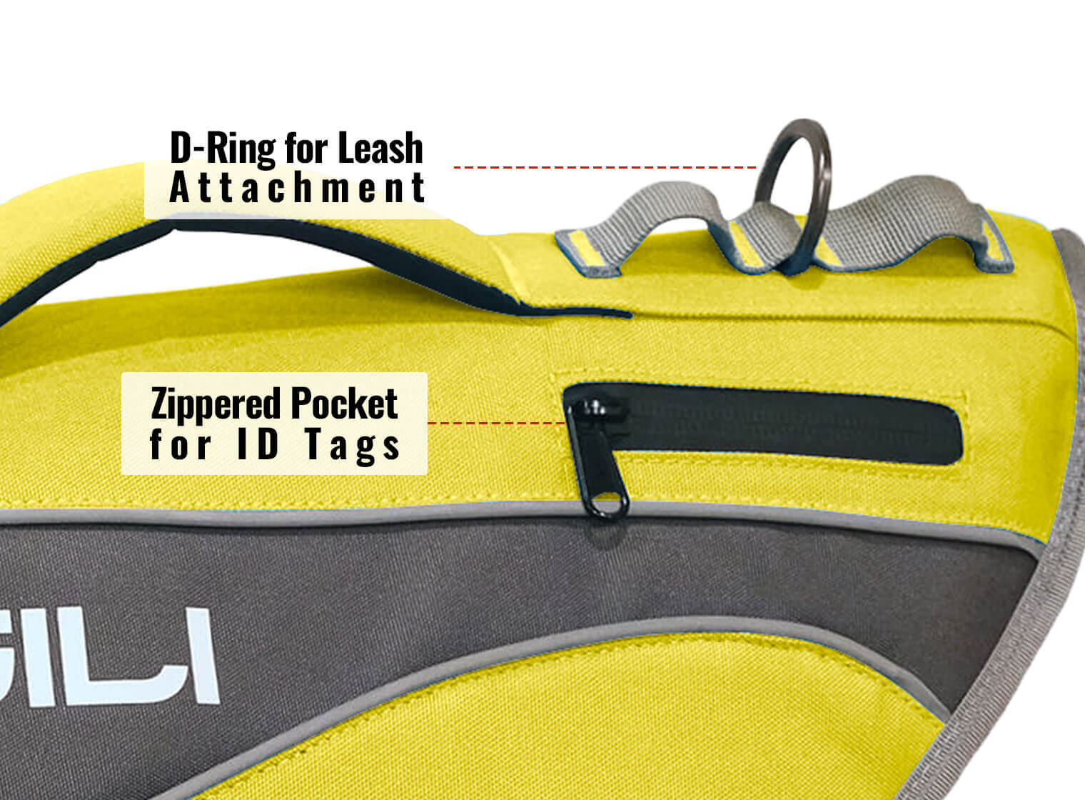 A reinforced grab handle allows you to pull your dog up and out of the water if necessary, and a d-ring provides a quick attachment point for your leash. Reflective piping helps keep visibility high in low light conditions.